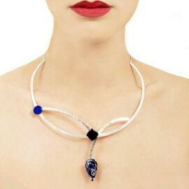 I87: Χειροποίητο Κολιέ με σμάλτο και υγρό γυαλί επαργυρωμένο