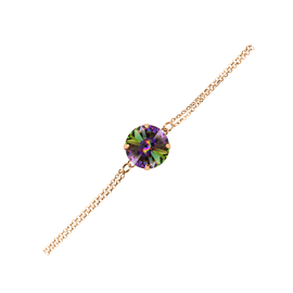 J28: Χειροποίητο Βραχιόλι με preciosa ιριδίζον πολύχρωμο ροζ χρυσό